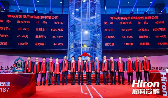 2018年11月29日,随着上海证券交易所鸣锣开市,青岛海容商用冷链股份有限公司(股票简称“海容冷链”,证券代码:603187)正式登陆A股市场,成为2018年山东省首家A股上市企业,是上交所第1449家上市公司,同时也是2018年上交所第55家新上市公司。海容冷链未来将充分把握A股上市的全新发展机遇,借助资本市场力量,开启新的发展征程。海容冷链本次公开发行股票2,000万股,发行价格32.25元/股,新股募集资金总额6.45亿元,发行后总股本8,000万股。