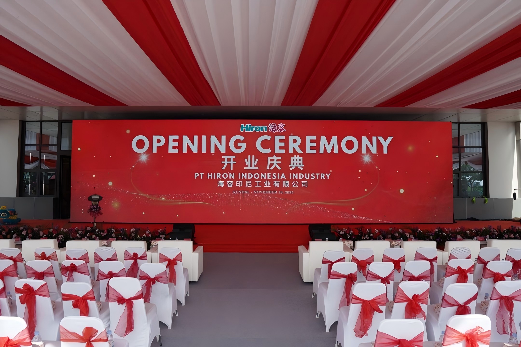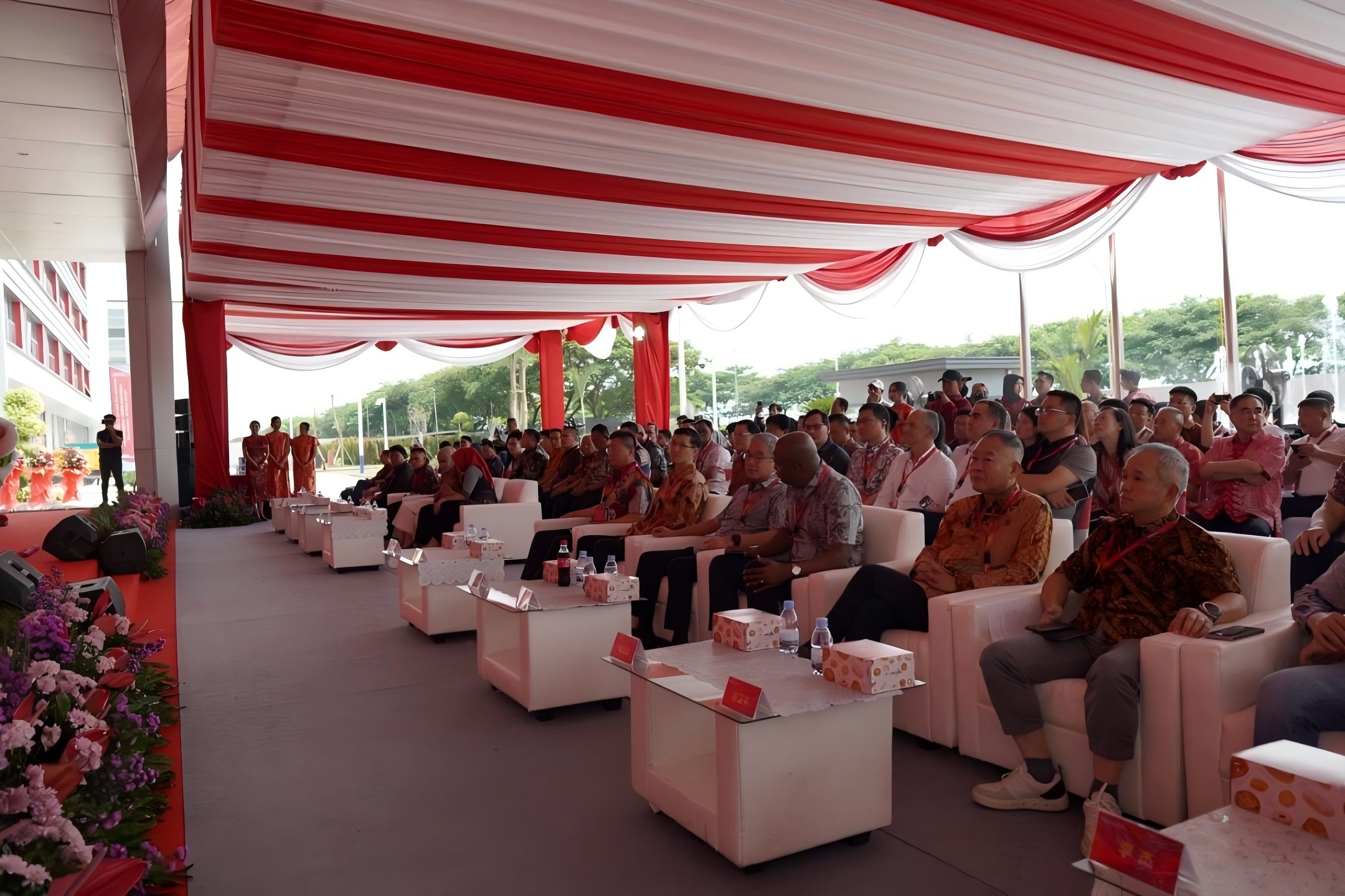 开业庆典于当地时间10:00正式启动,印尼政府及园区代表、客户与供应商代表、公司保荐机构等多方嘉宾齐聚三宝垄市肯德尔工业园区,近200位国内外各界嘉宾共同见证了这一重要时刻。